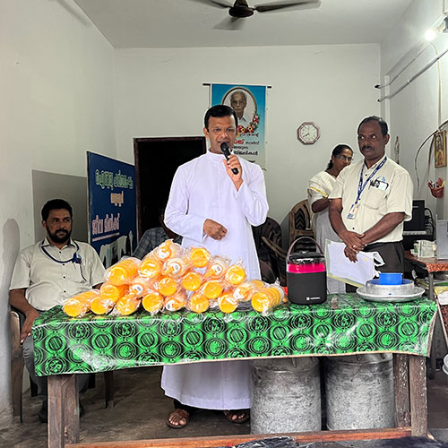 In 2004 Rev. Fr. Jacob Thalappillil was appointed the Executive Director of the Jeevodaya Milk Project. Under his dynamic leadership the growth of the project was accelerated. The revamping of Jeevodaya Milk Project tackled many challenges and right now various socio-economic programmes envisaged by him have been implemented. When the sale of milk and milk products increased there was a shortage in milk procurement from Kerala. To address this problem, Jeevodaya Milk Project purchased land at Surandai in Tenkasi District of Tamil Nadu. Construction of a new milk Chilling plant commenced in 2007 and was inaugurated in 2009 by Mar George Punnakottil, at a meeting presided over by His Excellency Mar George Alancherry, the then Bishop of Thakkalai. Presently the Chilling plant at Tenkasi procures more than 28000 litres of milk daily after ensuring strict quality check. Milk collected directly from farmers and chilled in our chilling plant at Surandai and brought daily to the processing plant at Pareekanni Kerala. The chilling plant has a capacity of handling 50000 litres of milk daily. A well equipped laboratory and trained Technical staff ensures standard quality milk. Nearly 1500 farmers are beneficiaries of this project.